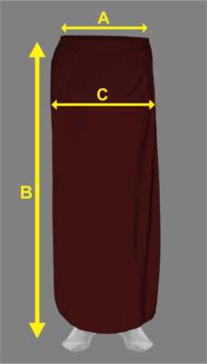 | Size | (A) Waist | (B) Length | (C) Hip |
